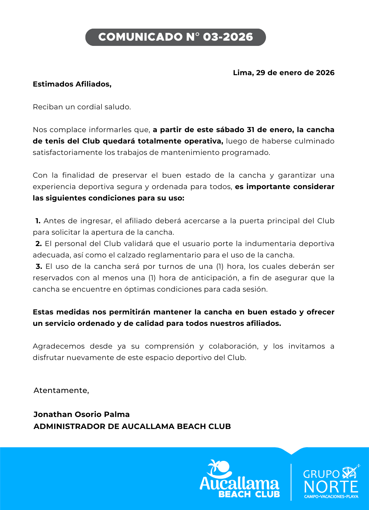Comunicado N° 03 – 2026